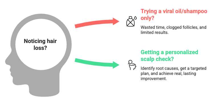 Pro Tip: How to Use Viral Products Safely If you still want to try scalp oils, follow these rules: Always dilute essential oils (like rosemary) in a carrier oil (like jojoba). Do a 24-hour patch test. Use them a maximum of 2 to 3 times per week to avoid suffocating the follicle, and stop immediately if your scalp gets itchy or red. Combine them with proven treatments, rather than relying on them as a cure.